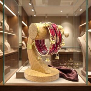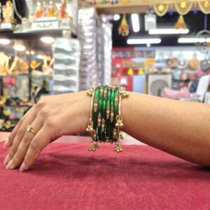 A highlight of our collection is the trending Kashmiri Ghungroo Bangles, loved for their distinctive charm and graceful movement. Inspired by traditional Kashmiri jewelry, these bangles feature delicate ghungroo bells that create a subtle jingle, making them a unique and eye-catching accessory for festive occasions, weddings, and cultural celebrations.