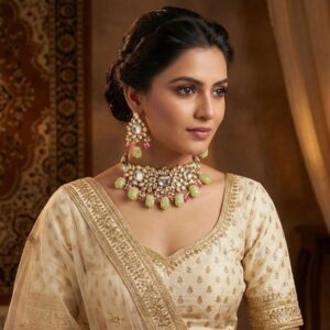 Swarnika Emerald Dew – Pista Green | Kundan Choker Necklace Set