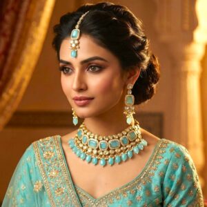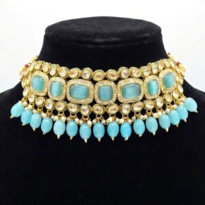 Swarnika Emerald Dew – Turquoise | Kundan Choker Necklace Set
