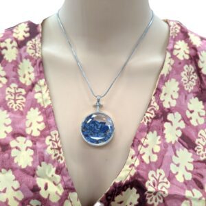 Natural Gemstones – Round Pendant Necklace – Lapis