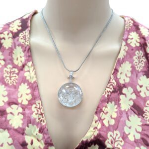 Natural Gemstones – Round Pendant Necklace – Clear crystal