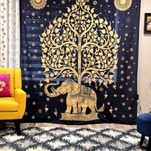 Tree of life – Elephant – Golden-Black Tapestry – Big